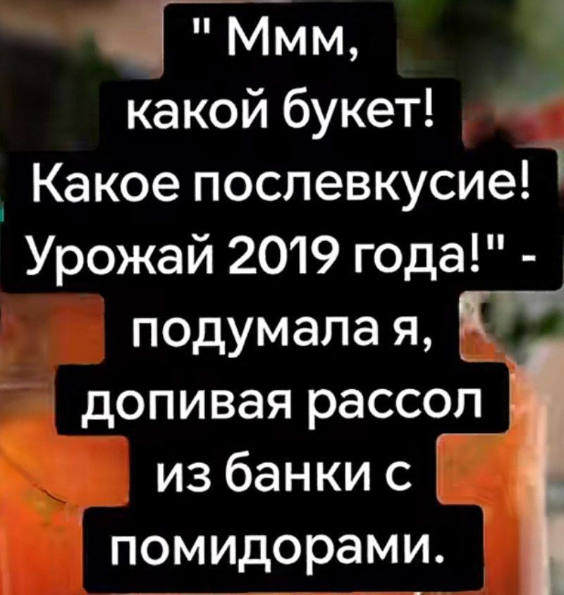 "Ммм, какой букет! Какое послевкусие! Урожай 2019 года!" - подумала я, доливая рассол из банки с помидорами.