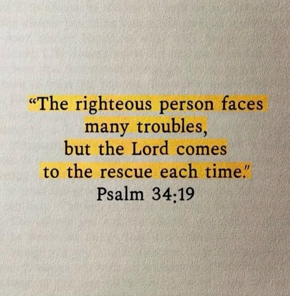 "The righteous person faces many troubles, but the Lord comes to the rescue each time." Psalm 34:19