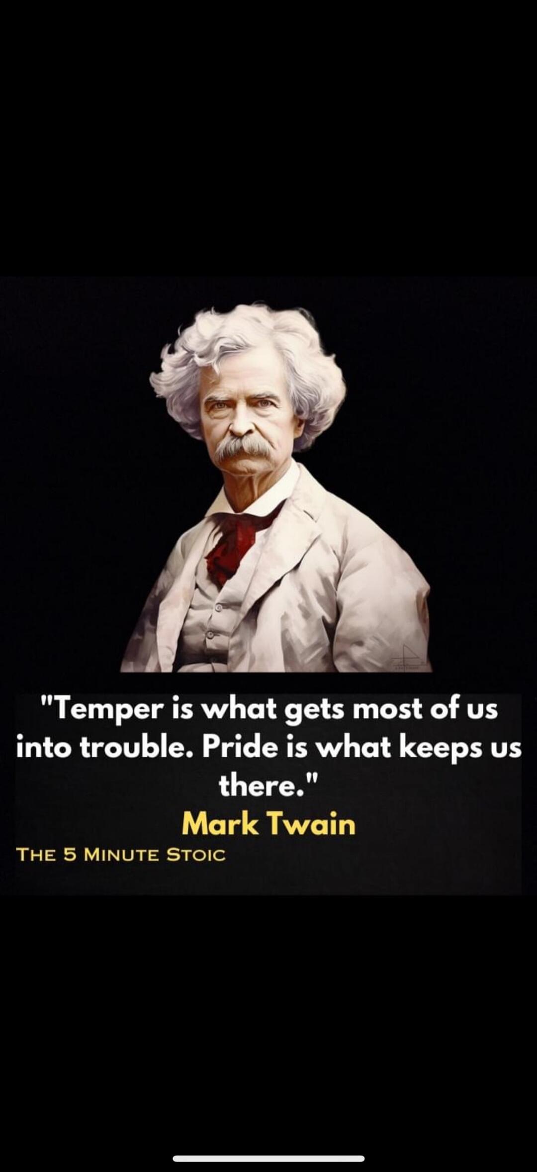 "Temper is what gets most of us into trouble. Pride is what keeps us there." Mark Twain