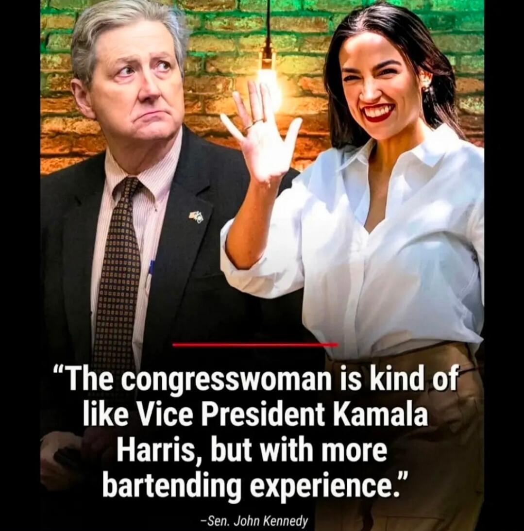 "The congresswoman is kind of like Vice President Kamala Harris, but with more bartending experience." -Sen. John Kennedy